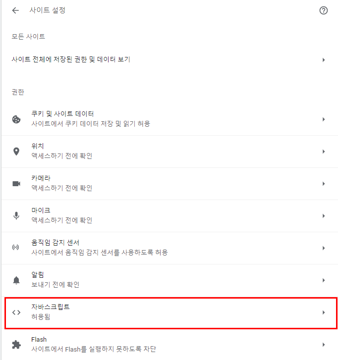 두 번째로 자바스크립트 사용 설정방법은 다음과 같다.
