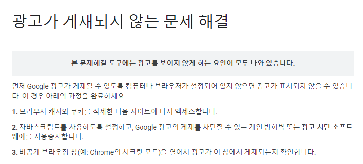 애드고시라고도 불리는 애드센스 광고를 승인받았지만 여전히 광고가 나오지 않는 경우가 있다.