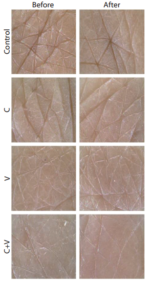 콜라겐과 식초를 함께 먹은 사람들은 피부 주름의 깊이가 더 얕아져서 전체적으로 피부가 더 매끄러워졌습니다. 그리고 콜라겐만 먹은 사람들은 각질이 약간 좋아지고 피부주름의 깊이가 얕아졌습니다. 마지막으로 식초만 먹은 사람들은 큰 변화가 없었습니다. 따라서 콜라겐과 식초를 함께 먹으면 손등 주름까지 개선될 수 있는 것으로 확인되었습니다.