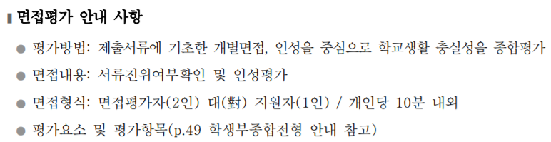 여기서 주의할 점은, 공인어학성적, 교과관련 교외수상실적, 해외봉사실적 등은 평가에서 반영하지 않는다는 점입니다.