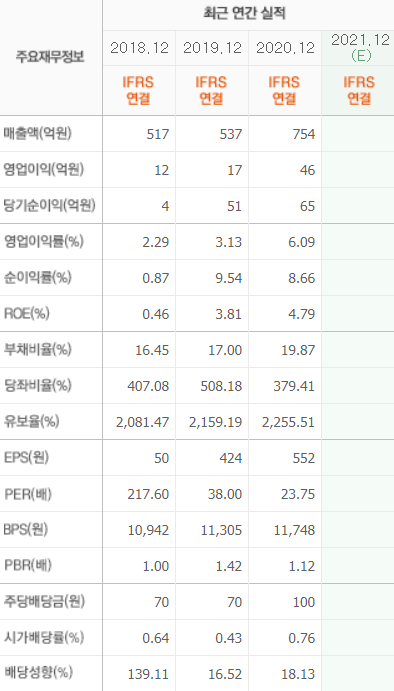 영업이익률, 순이익률 증가중이고, 부채비율 적고 유보율 좋네요. ROE도 14%가 넘습니다. 이건 높을수록 좋습니다.