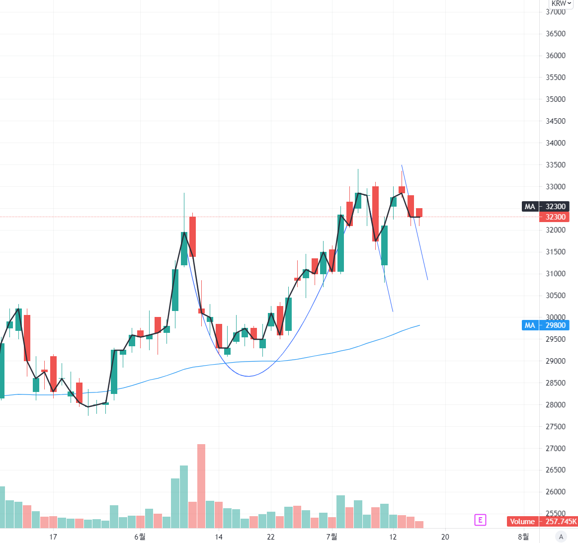 32300원 진입시 29300원까지 1% 하락할 때마다